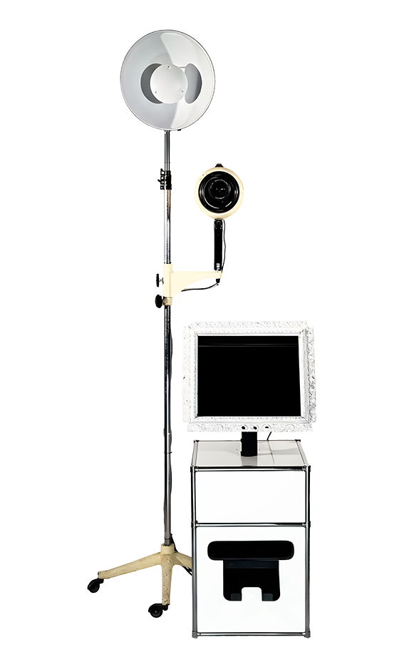 Unsere Fotobox-Kamera steckt in einem echten Designklassiker: einer originalen Sollux Hanau Lampe, die liebevoll und aufwendig zu einem einzigartigen Kameragehäuse umgebaut wurde. Ursprünglich in den 1930er/40er-Jahren als medizinische Lichtlampe entwickelt, überzeugt die Sollux Hanau durch ihr ikonisches Bauhaus-Design, robuste Materialien und markante Formgebung.